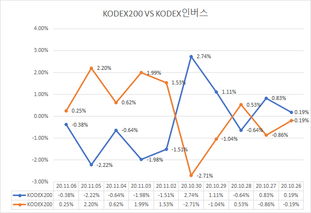 KODEX200 vs KODEX인버스 같이 사면 어떻게 될까?