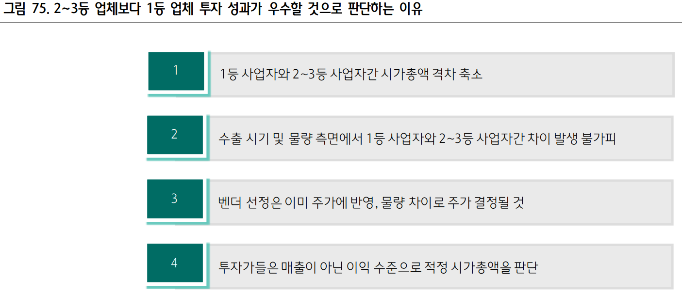 4) 2~4등 업 체와는 달리 미국 시장에서 의미 있는 성과를 낼 것인데 매출 지연 실망감으로 단기 주가가 과도하게 하락한 상황