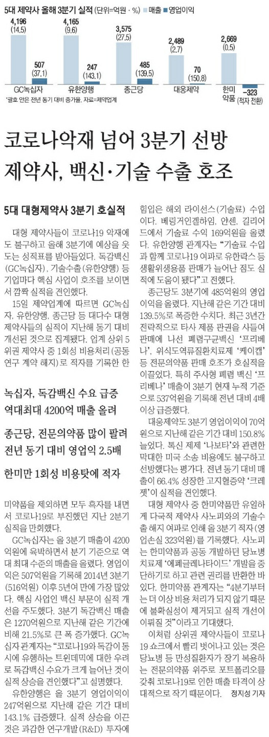 코로나와 상관없이도 성장하는 제약회사