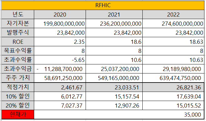 심지어 초과수익금이 -가 되다 보니까 할인 가격이 적정가치 보다 더 비싸게 나온다.