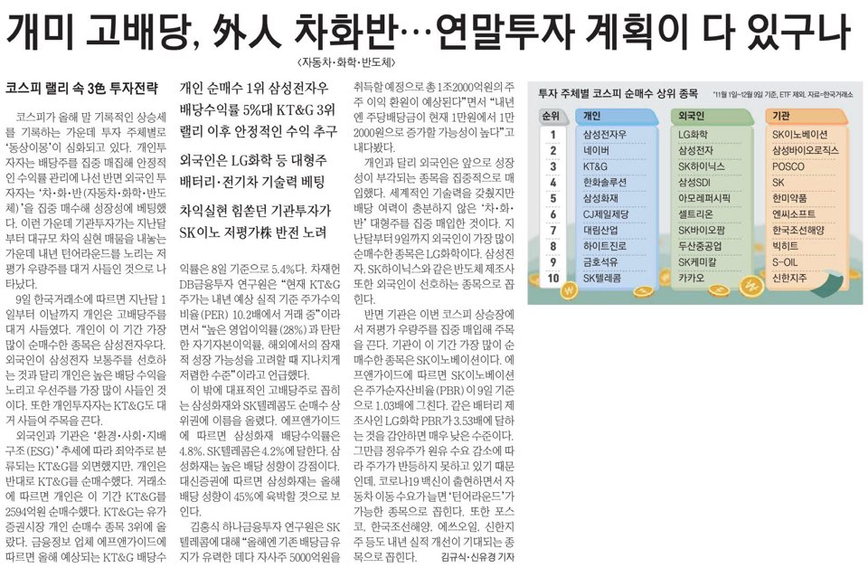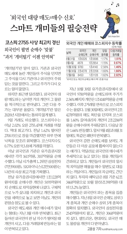 개인들은 외국인이 파는 종목을 집중 매수했다. 개인들이 외국인의 일시적 차익실현 매물을 매수 일변도로 대응하는 까닭이다.