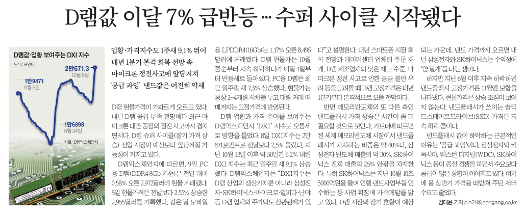 DXI지수는 D램 산업의 생산가치뿐 아니라 삼성전자, SK하이닉스, 마이크로, 엘피다, 난야등 D램 업체의 주가와도 상관관계가 있다.
