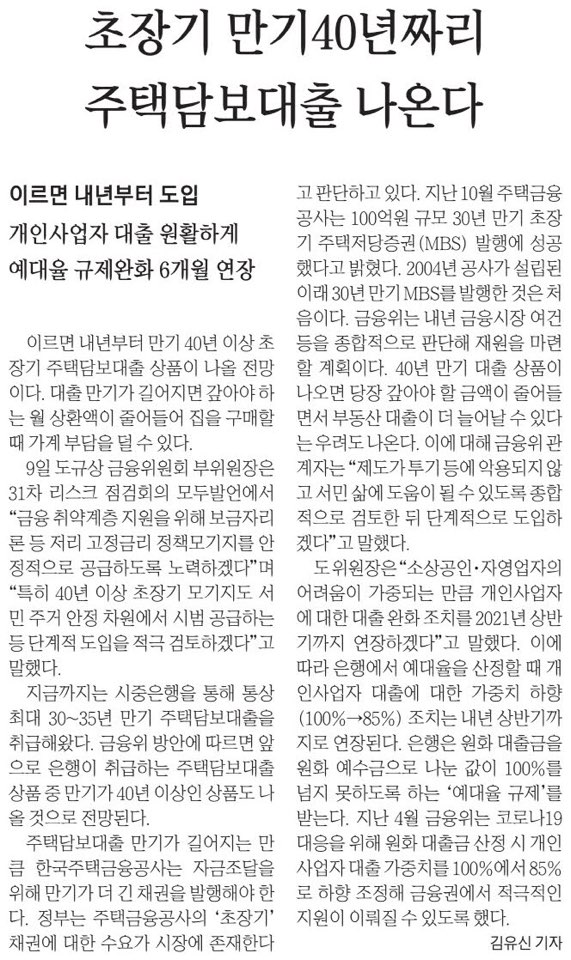 주택담보대출 만기가 길어지는 만큼 한국주택금융공사는 자금조달을 위해 만기가 더 긴 채권을 발행해야 한다.