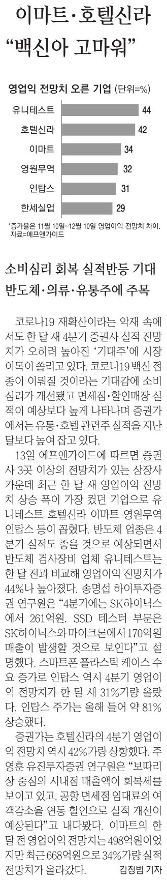 유니테스트(반도체 장비), 호텔신라, 이마트, 인탑스(플라스틱), 영원무역