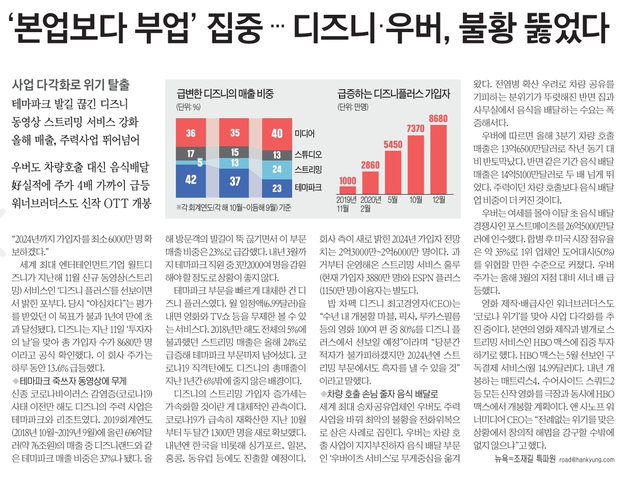 2018년만 해도 전체의 5%에 불과했던 스트리밍 매출은 올해 24%로 급증해 테마파크 부문마저 넘어섰다.
