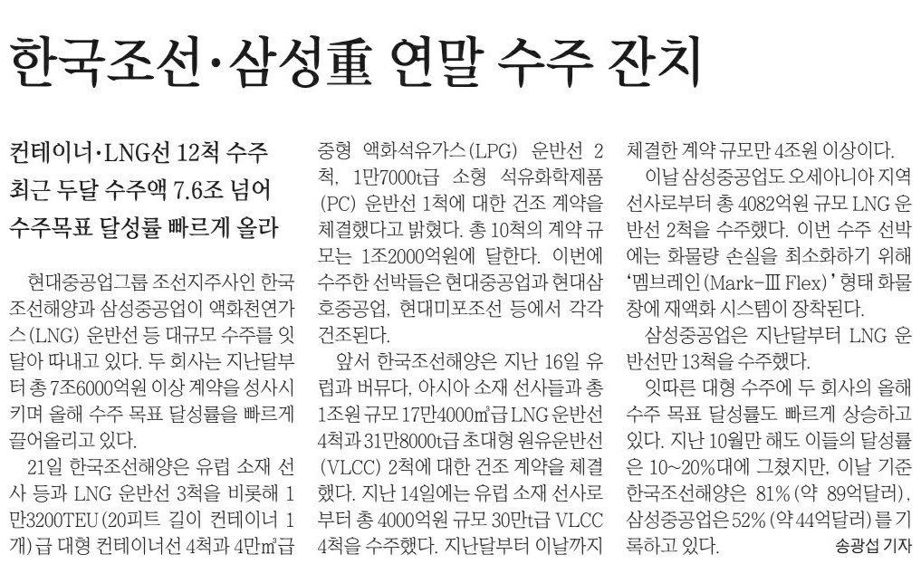 한국조선해양: 81%, 삼성중공업 52%