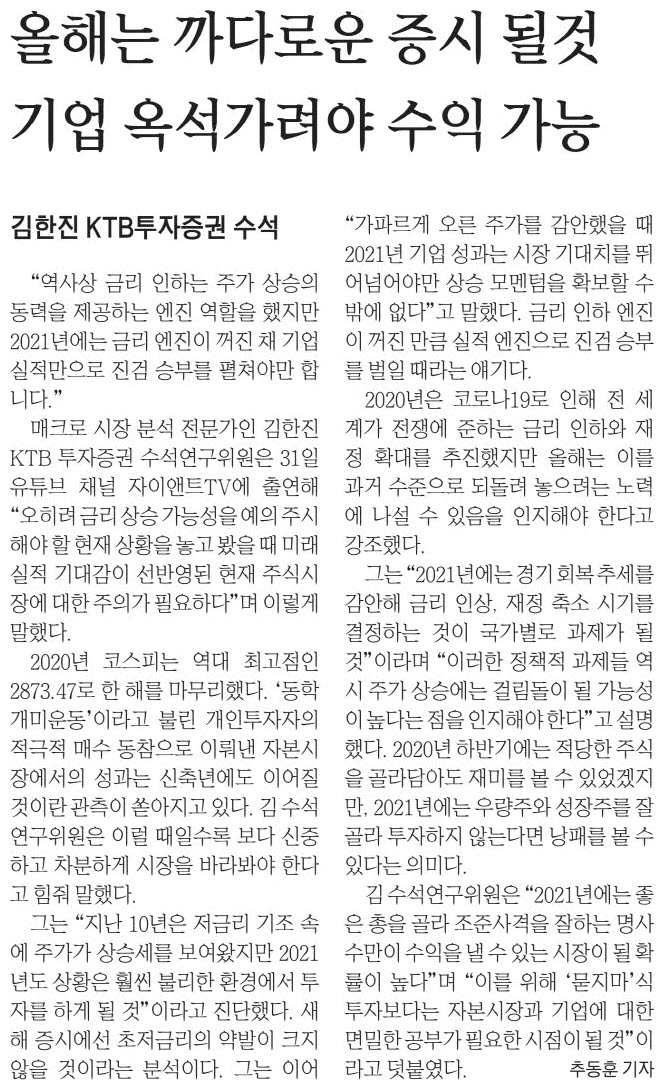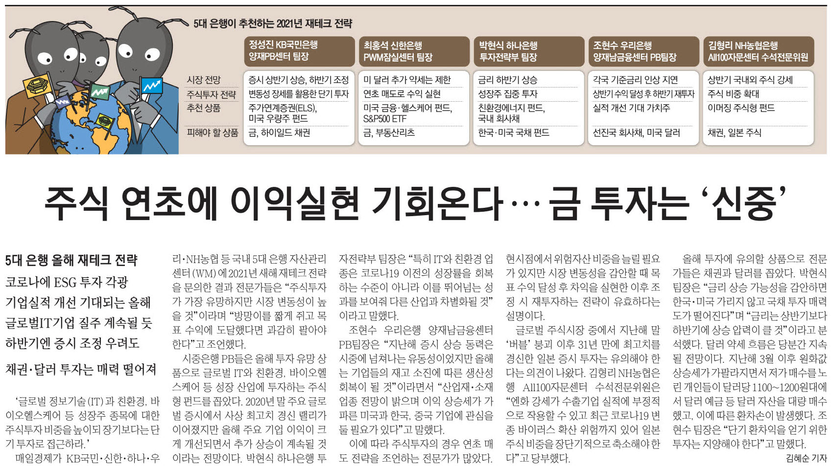 IT, 친환경, 바이오헬스케어 등 성장주 종목에 대한 주식투자 비중을 높이되 장기보다는 단기 투자로 접근하라.
