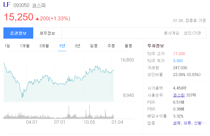 동사는 2006년 LG상사로부터 분할돼 유가증권시장에 재상장함. 기성복 생산과 판매를 주요 사업으로 영위하며 LF푸드, LF코프, LF패션 등을 연결대상종속회사로 보유함.