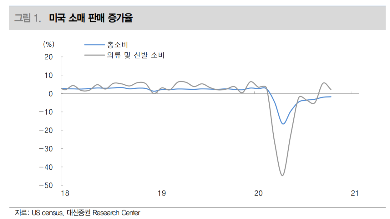 글로벌 소비 회복과 맞닿아 있는 한국 의류/신발 기업들 - 대신증권