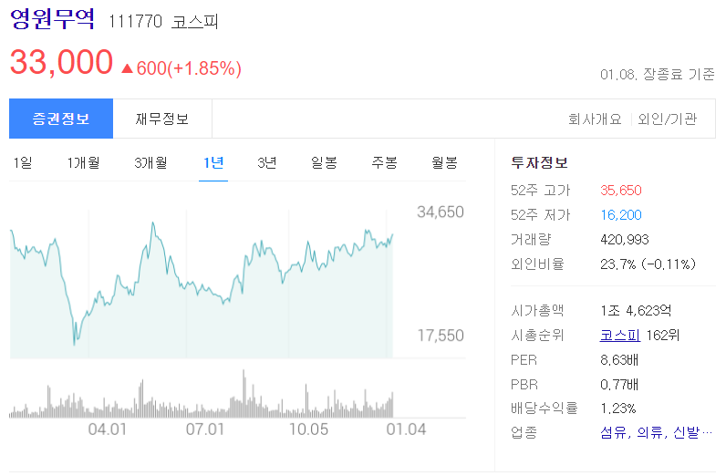 수출입업, 의류 제조 및 판매업 등을 영위할 목적으로 1972년 상장되었으며 1994년 한국거래소에 상장됨.