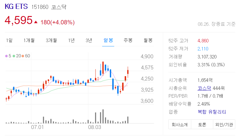 반등 2종목 : 인성이엔티, KG ETS