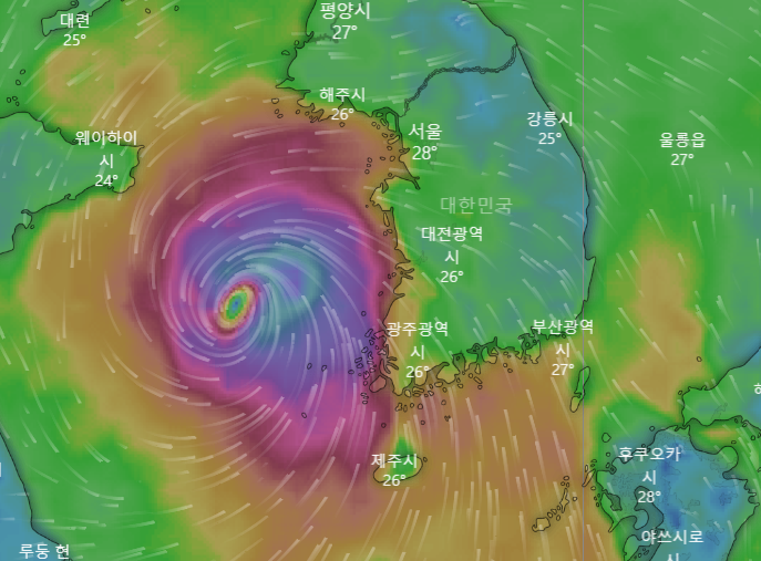 오늘 새벽에 4시쯤에 태풍의 위치가 서울에 가장 근접한다고 하는데요