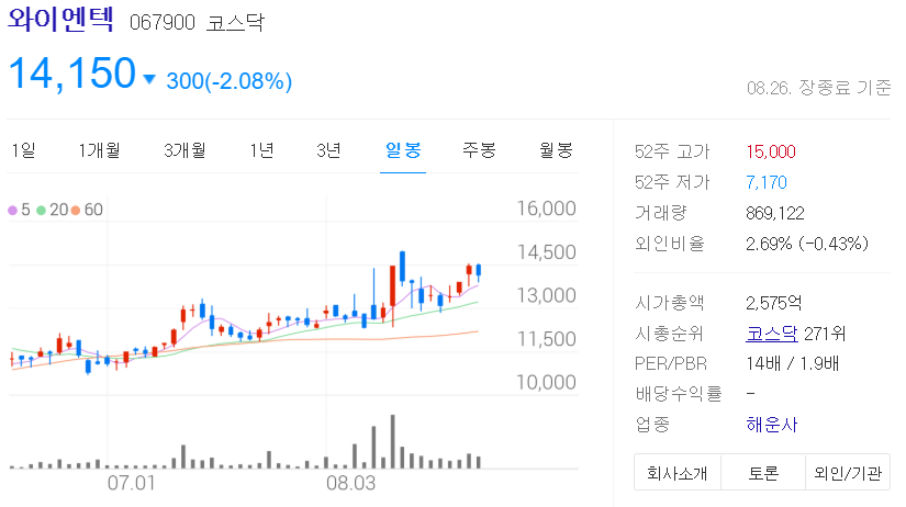 완만한 성장 1종목 : 와이엔텍