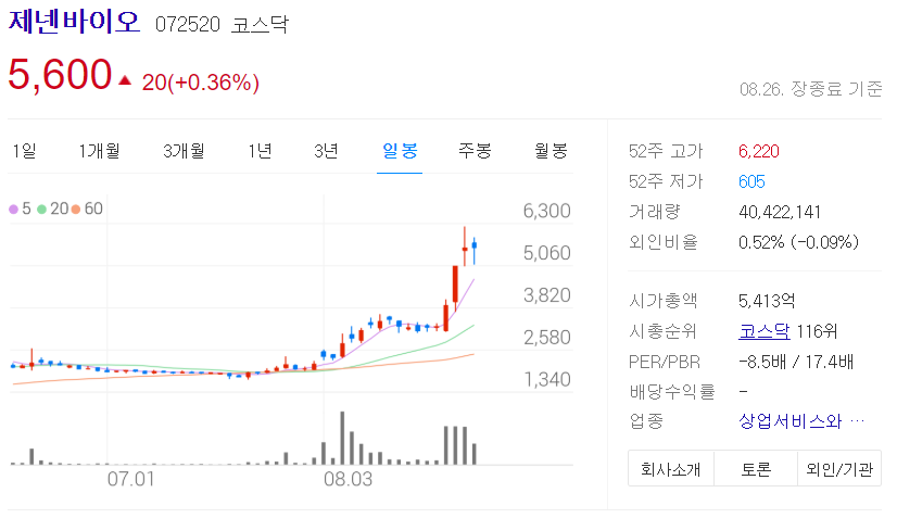 급등 1종목 : 제넨바이오