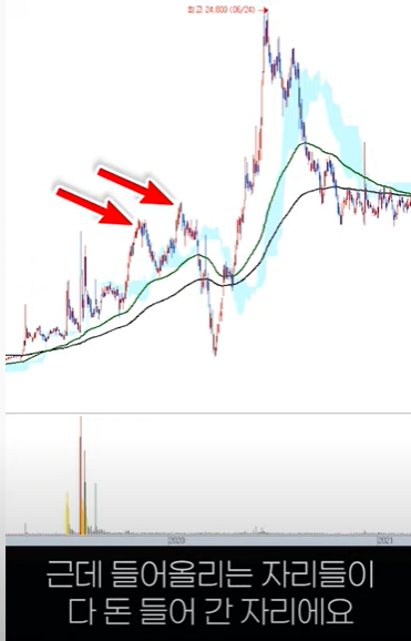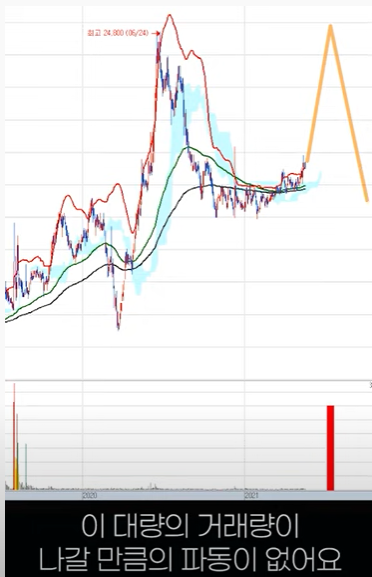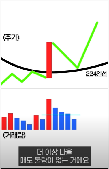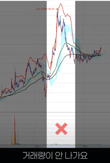 이 거래량이 앞전에 거래량이 터졌던(전고점) 시기의 거래량을 초과하는 순간 날아간다.
