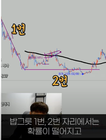 밥그릇이 완성된 후(하락한 기간만큼 충분한 횡보를 한 후) 224일 이평선에 터치 하는 순간 매수하면 확률이 높다.