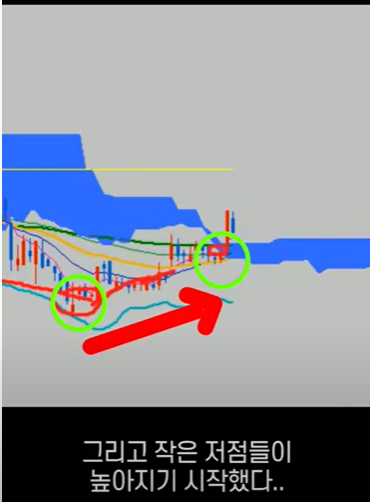 고점이 높아지고 있는지, 저점이 낮아지고 있는지 등을 확인해서 추세의 변화를 알 수 있다.