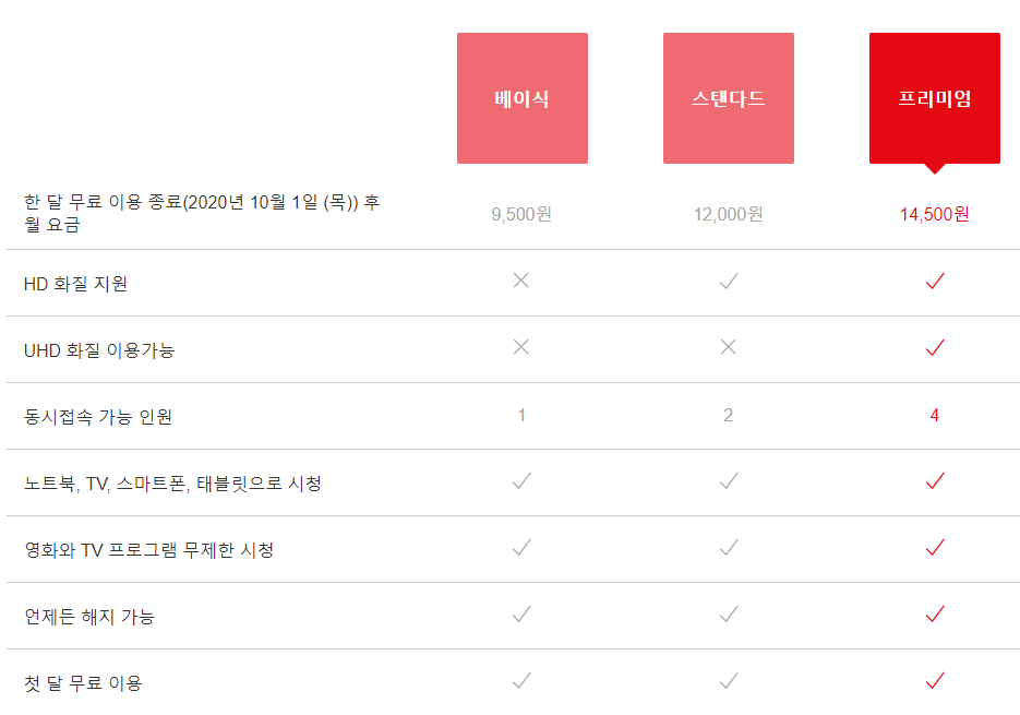 즉! 4명이서 1인당 3,625원씩 내면 넷이서 동시에 Netflix를 이용할 수 있습니다.