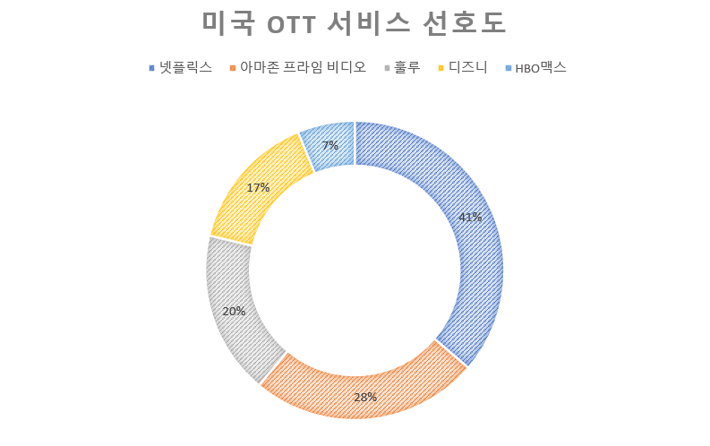 시장조사업체 퍼파이터 샌들러가 조사한 자료에 따르면 미국인들의 외출제한 기간에 OTT 서비스 선호도는 넷플릭스(41%)가 1위, 그 뒤를 아마존 프라임 비디오(28%), 훌루(20%), 디즈니+(17%), HBO맥스(7%) 순이고