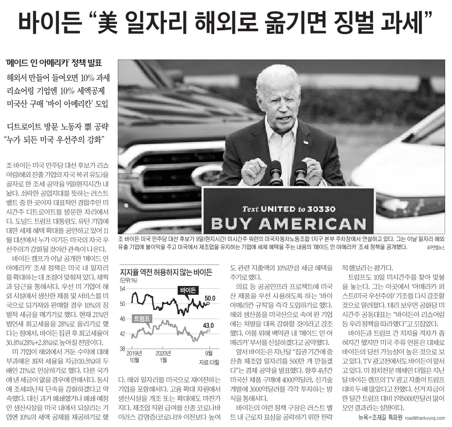 ▣ 아메리카 퍼스트는 트럼프의 무기였는데 바이든이 트럼프 지지층까지 흡수 가능하네요. 바이든이 승리했을 때 유망한 사업에 관심을 갖는 것도 좋은 투자 방법이라고 합니다.