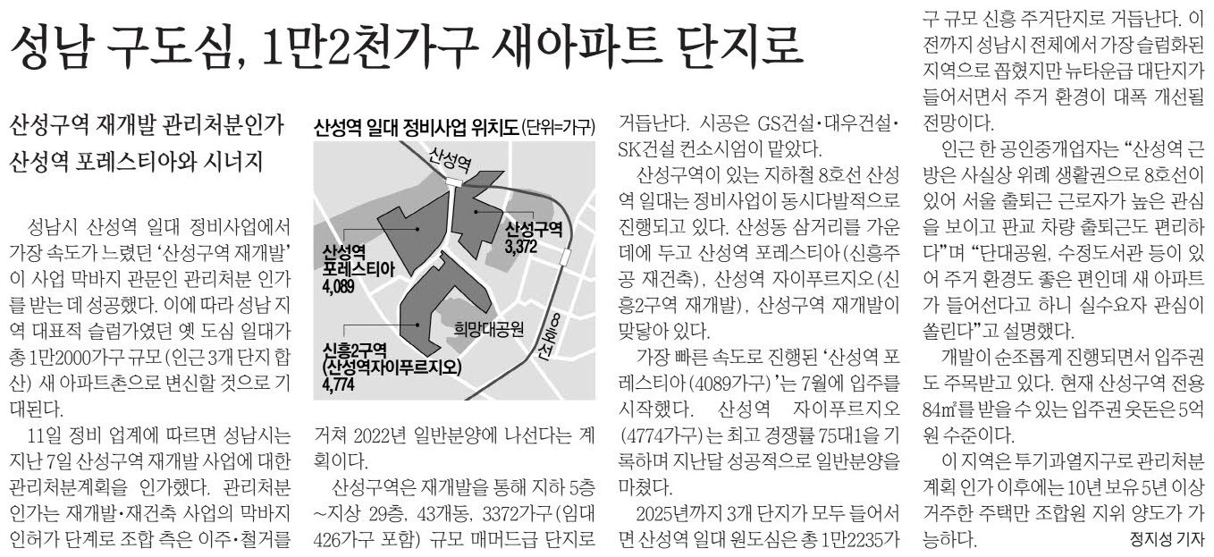 ▣ 입지로 다지면 분당보다는 성남이 좋습니다. 하지만 모든 인프라는 분당이 좋습니다.