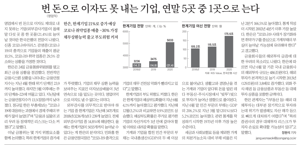 최근에 나오고 또 나온 기사 한계기업의 증가. 또 하나의 경고 신호
