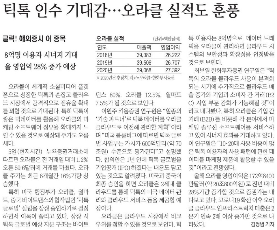 오라클은 틱톡이 없어도 엄청난 회사 인데....