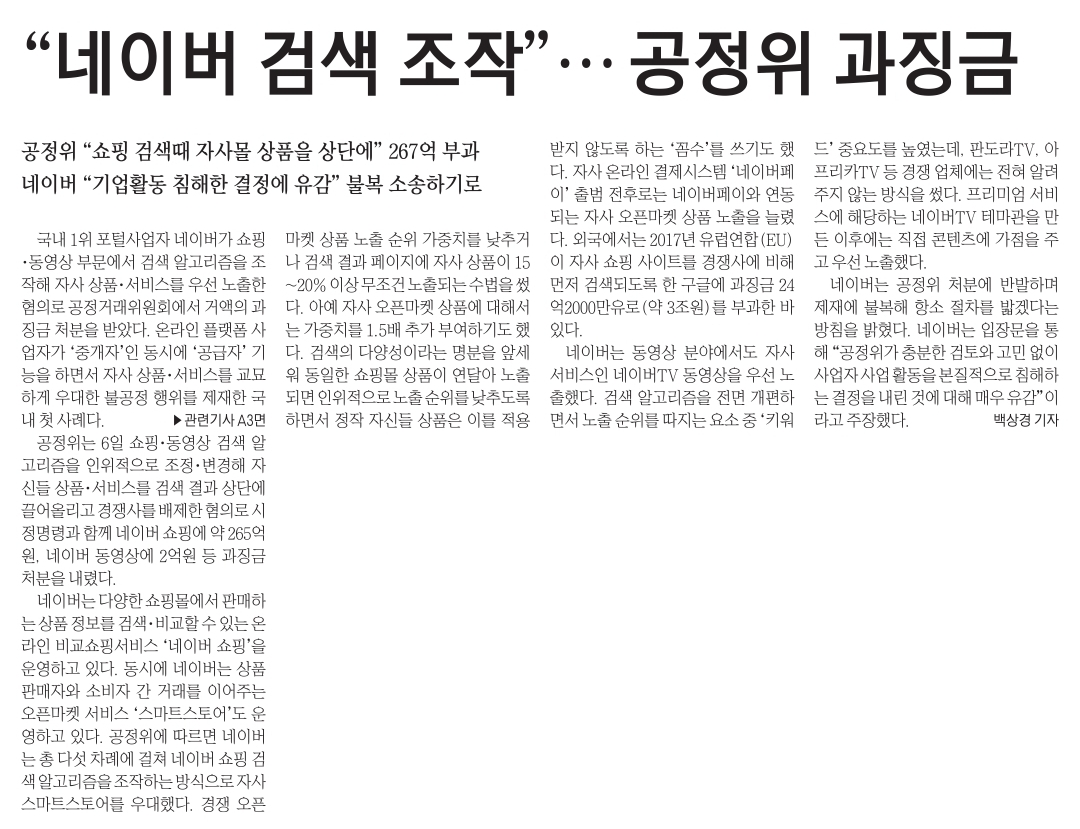 네이버가 만든 검색 알고리즘을 네이버가 수정하는데 조작이라는 표현을 하는건....